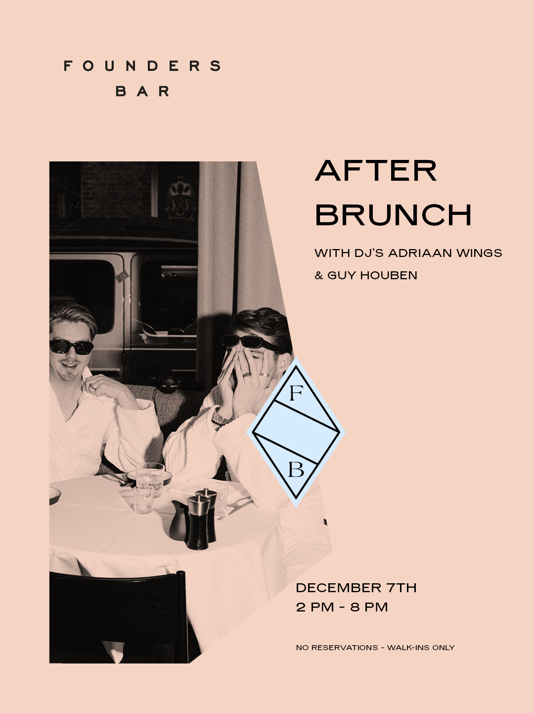 - After Brunch – Sunday, December 7th 2 PM – 8 PM With DJs Guy Houben & Adriaan Wings. Walk-ins only.